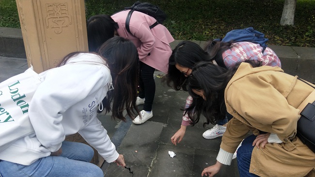本网讯(文、图/李红婷)为响应乐山市“双创”号召,配合学校双创工作顺利开展,发扬发展对象的先锋模范作用,教科学院2019上半年全部发展对象于4月4日中午12点在桂花广场开展拾起“白色”垃圾活动。