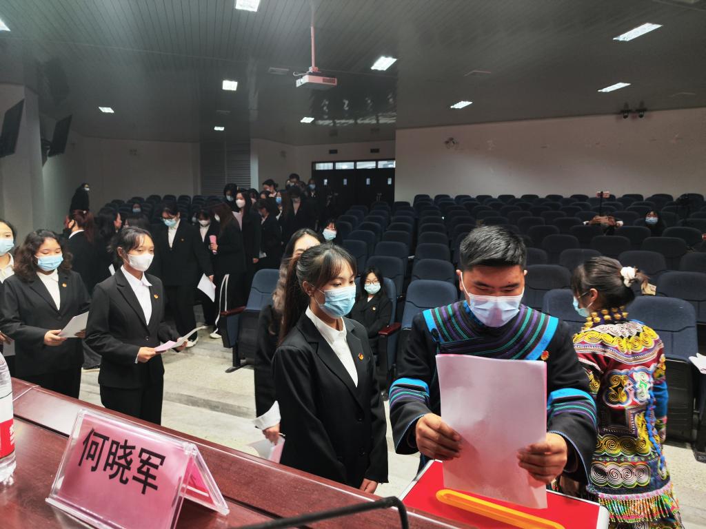 第二阶段,进行团学干部选举。大会审议通过了《乐山ty8天游平台登录第九届青年团员暨学生代表大会选举办法》,宣读了候选人名单并进行了第九届团学组织委员选举,现场分发选票,然后进行投票、计票,根据计票结果,选举出了杨婷婷为分团委书记,张滢滢、李茂月、邓鹏为分团委副书记,青艺培、黎杰等人为主要团学干部。