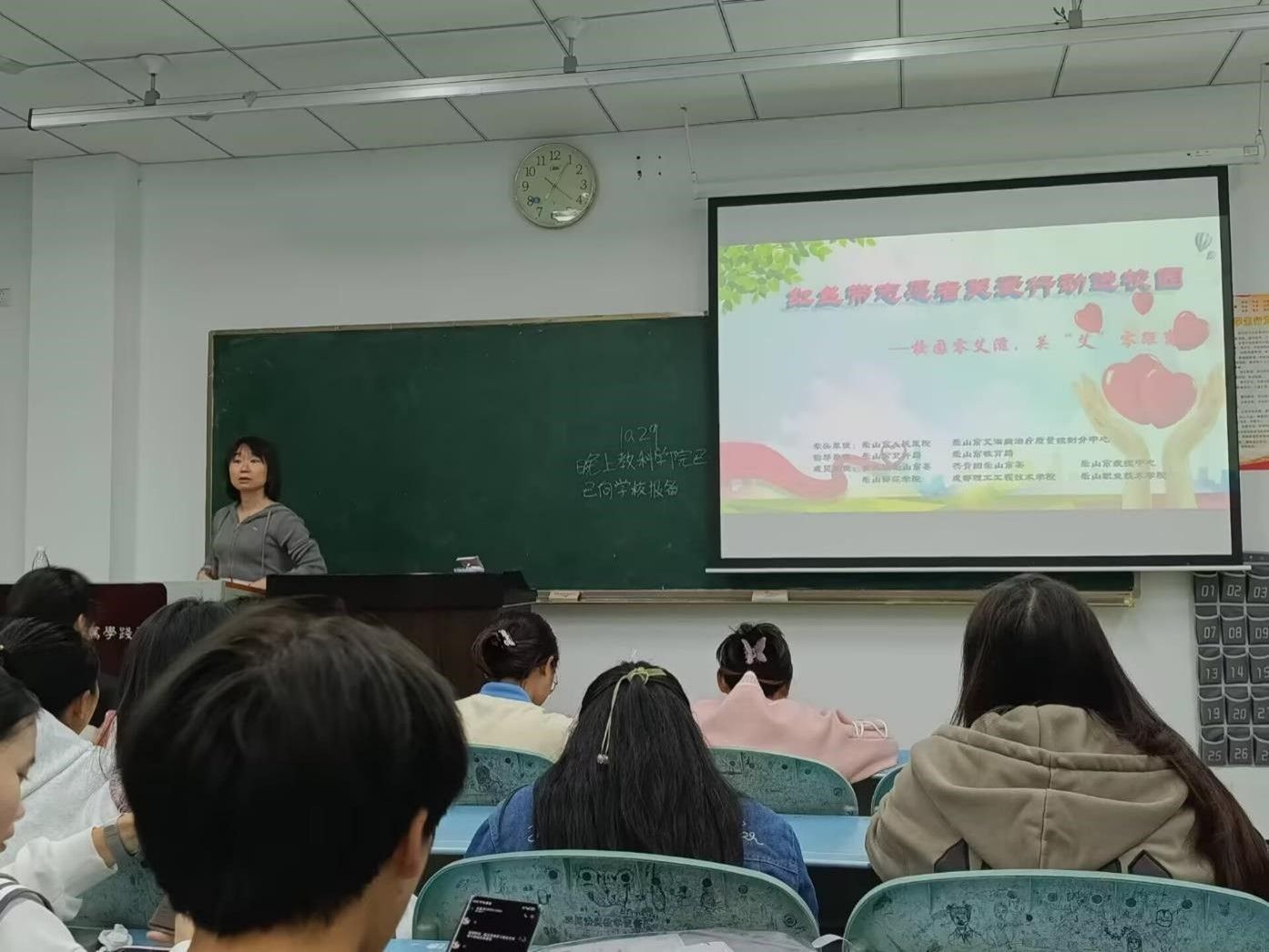 本网讯(文、图/王兴婷)青春无“毒”,人生无悔,10月29日晚, 教育科学学院在行知楼327教室开展了“禁毒防艾”主题讲座,乐山市人民医院感染科医生李佳萌主讲,2024级各班学生参加。