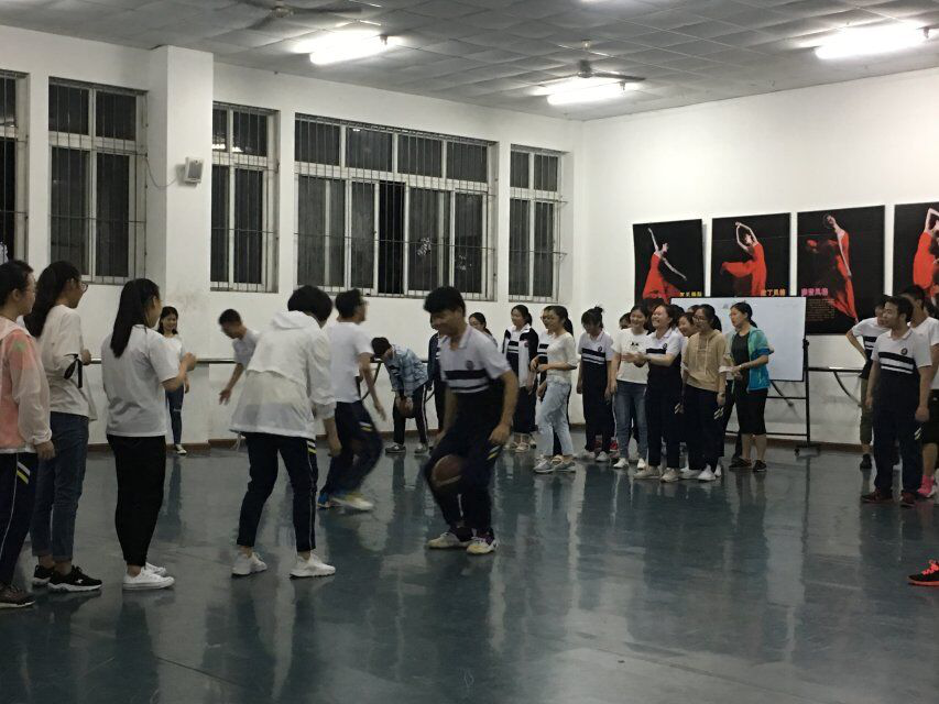 第五小组的小老师们在对同学们进行分组,大家围成一个圈。按1234进行循环报数,每一个序号代表一个组,其他带领团体辅导活动的小组也大都采用这种方式进行分组,他们一致认为:“这样分组可以打乱同学们的小团体,活动带领起来也更方便。”同学们正在进行分组夹球的比赛,这种团体竞争的比赛可以很好地促进小组的凝聚,同时,也可以很好的帮助同学们减压。
