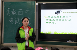 上午10点20分,乐芽织心团队针对初三学生,以“何为考试焦虑”“如何正确应对考试焦虑”“如何减压”为主题在初三各班级进行讲课,为同学们讲解何为考试焦虑、如何以正确的心态去面对考试以及如何用有效的方式放松身心、以更良好的精神状态去备考。