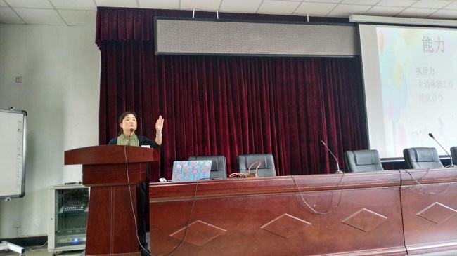 吴老师以行业发展的视角就“准教师的职业规划”和“如何打动面试官”跟大家进行了分享,以幽默风趣的语言风格讲述了人工智能对于幼儿教师的挑战、当今社会幼师面试的模式、教师个人发展空间、教师职业发展前景等,特别强调了面试技巧以及教师自身定位。随后廖园长从园长,管理者的视角分享“园长眼中理想的幼儿教师”,并与同学们进行了积极互动。