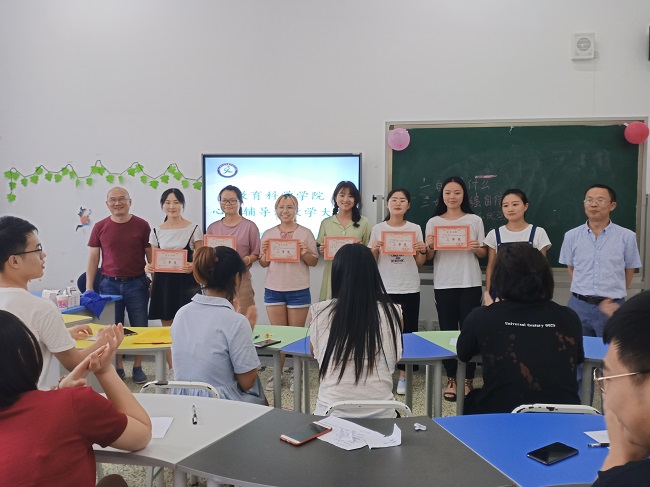最后,主持人宣布大赛最终成绩,评委老师依次为获奖选手颁奖,并合影留念。2017心理学专业曹小丹同学获得第一名,并将代表学校参加全国首届大学生心理辅导课大赛。