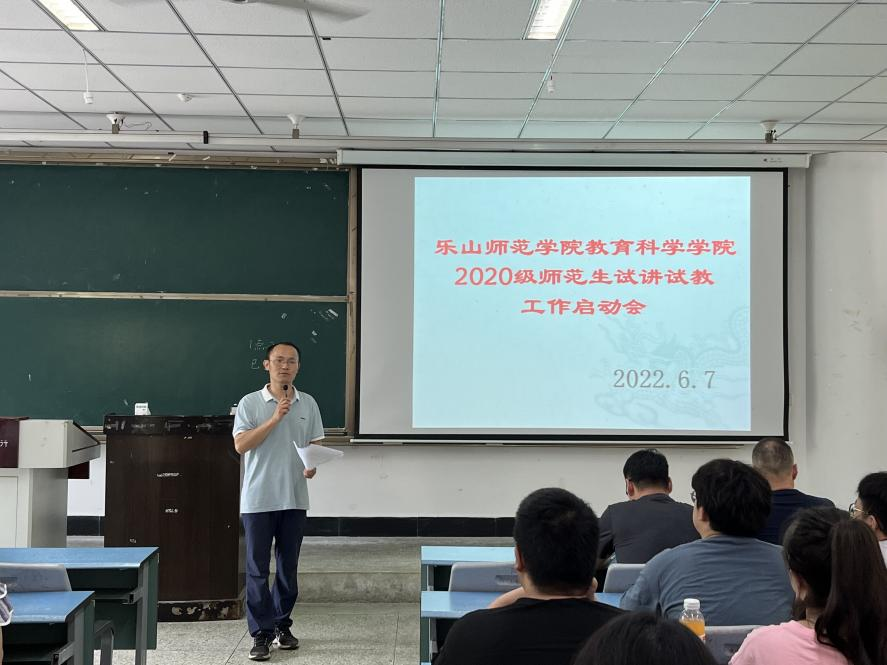 本网讯(文/冯紫君、图/邓鹏)6月7日下午1点,教育科学学院在行知楼114教室召开了2020级师范生试讲试教工作启动会。教育科学学院副院长唐前军、小学教育专业全体指导教师、科学教育专业全体指导教师与2020级全体师范生参加了此次大会。此次大会由小学教育专业姜立刚老师主持。