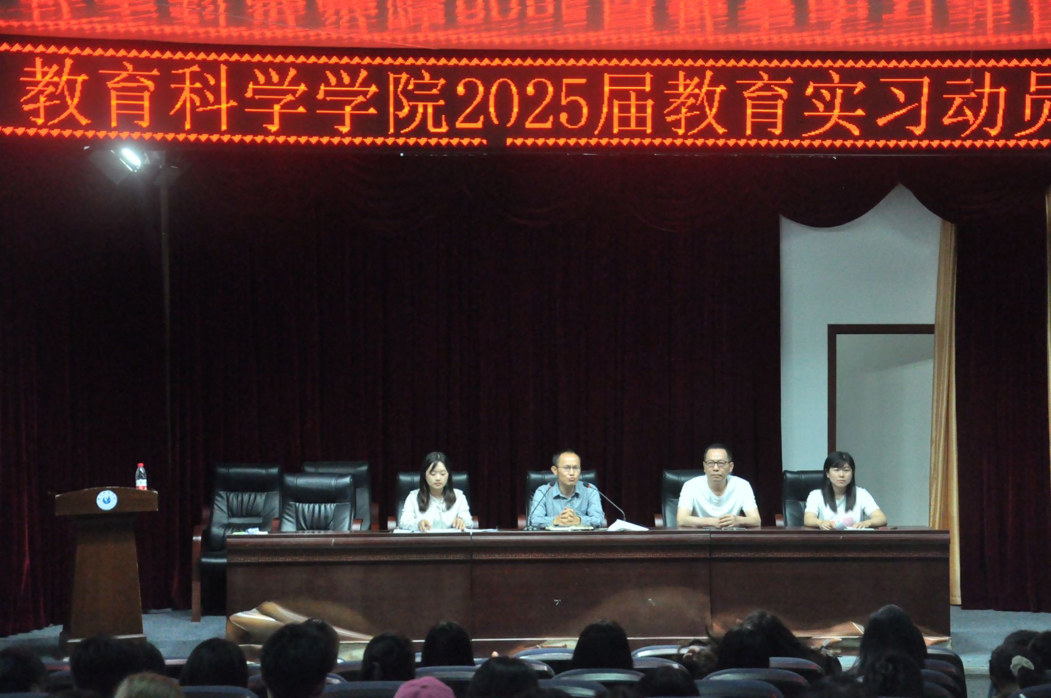 本网讯(文/贾琪、图/欧星雨)为增强学生们参与实习的积极性与主动性,帮助他们明确实习的目的和方向,6月13日中午,教科学院在特教A栋会议室举行2021级师范生实习动员会。教育科学学院副院长唐前军、教务老师帅希权,实习指导老师徐竹君、金春燕,辅导员张源元与2021级全体师范生参加了本次动员会。