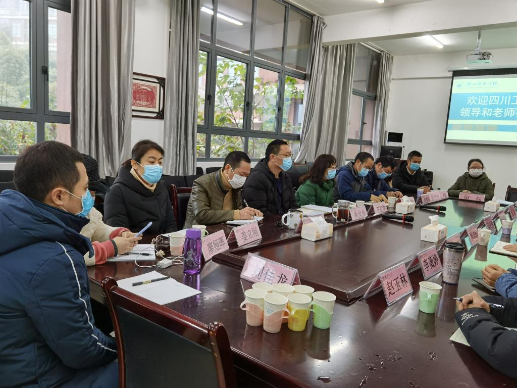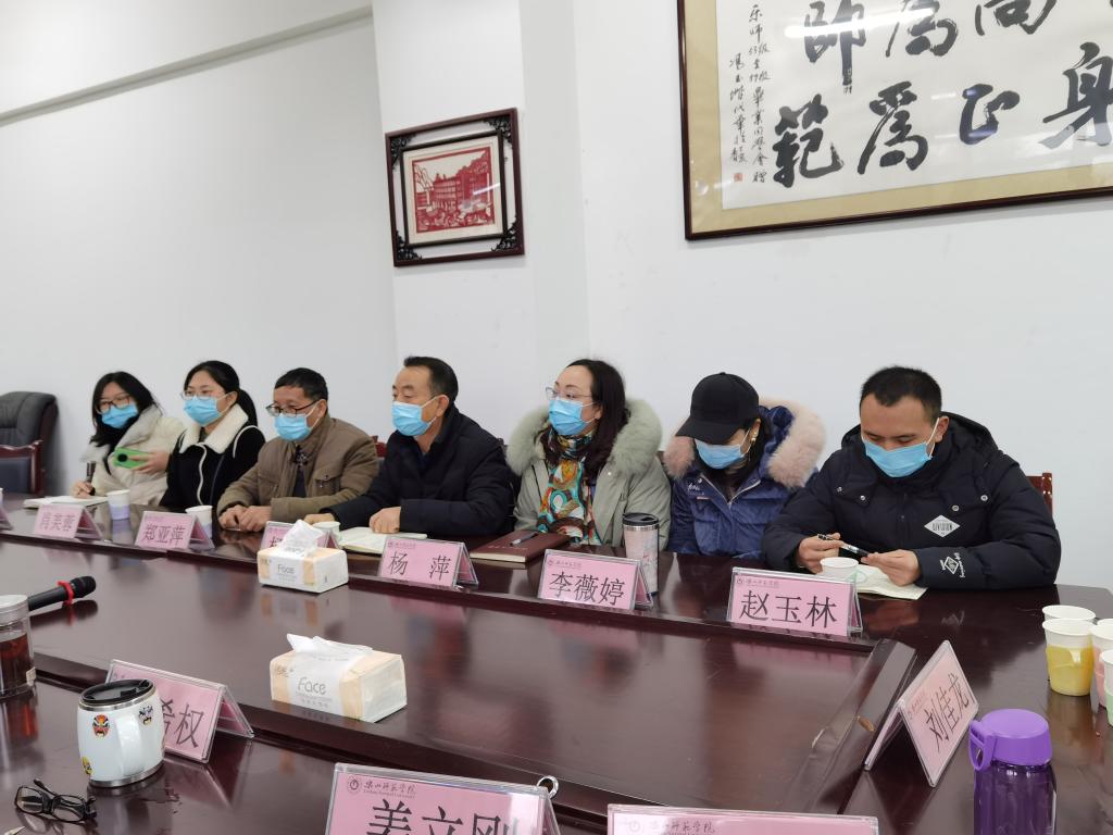 本网讯(图、文/袁英)12月18日上午四川工商学院教务处处长郑亚平、教育学院副院长杨志恒一行8人就本科评估方面的工作进行交流考察。教师教育学院院长汪红烨、副院长徐世鼎、相关教务、实验室科长以及教研室主任和老师在学院办公室与来宾进行了交流和座谈。