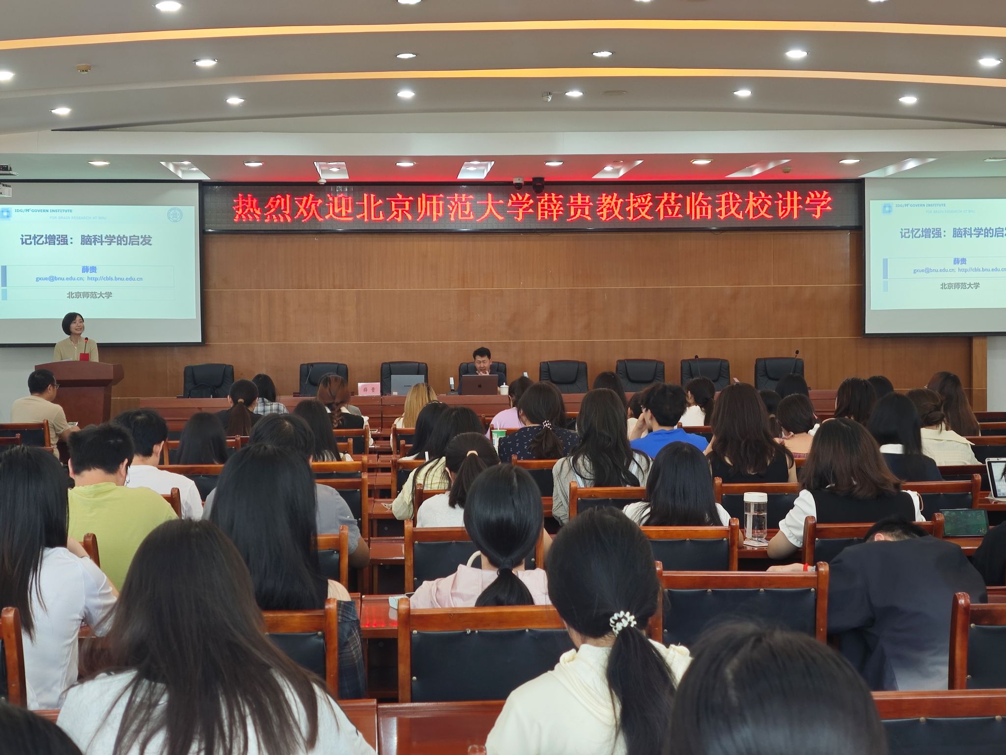 本网讯(图、文/马艺丹)5月16日下午,嘉州论坛(2025)第20场在图书馆5楼学术报告厅举行,北京师范大学认知神经科学与学习国家重点实验室教授、长江学者特聘教授薛贵应邀作题为《记忆增强:脑科学的启发》专题讲座。本次讲座由教育科学学院副院长马艺丹主持,教育科学学院心理学系全体师生参加了此次讲座。