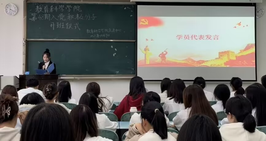 本网讯(文/盛曼、图/张媛)教育科学学院于10月19日下午,在行知楼101召开了第四十八期分党校入党积极分子培训开班典礼,党建辅导员杨蕾老师以及所有第四十八期入党积极分子参与了此次开班典礼。