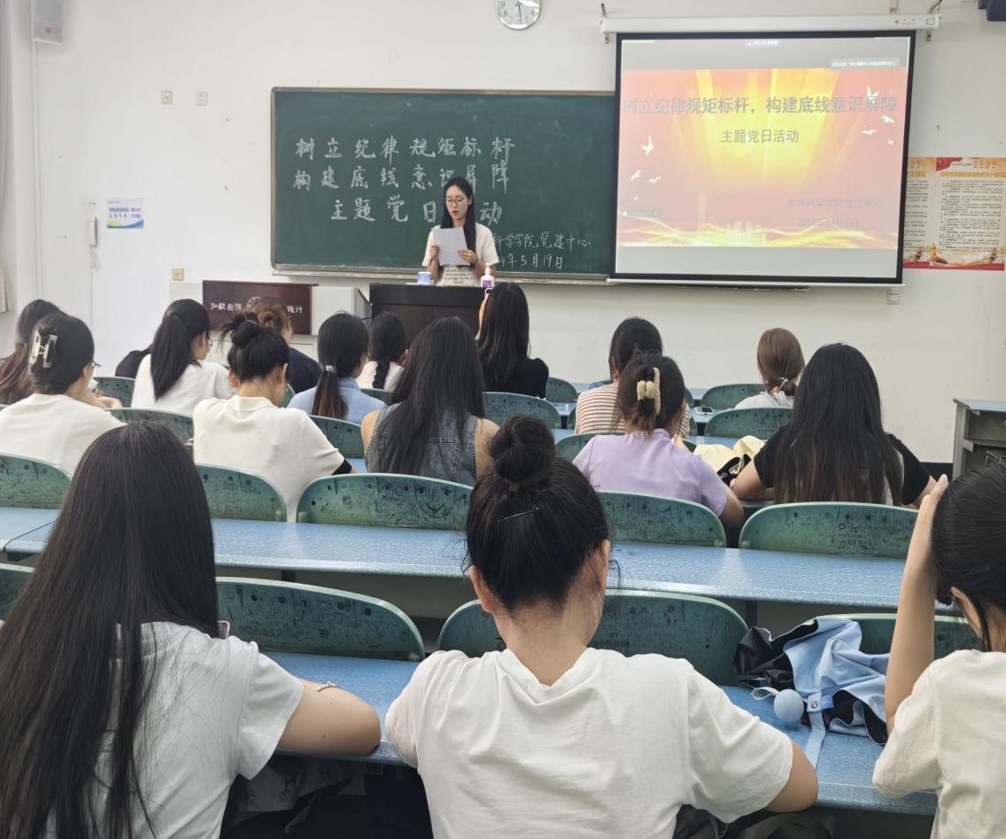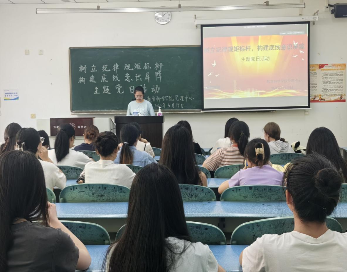 本网讯(文/陈侵源、图/张晶)5月19日下午,教育科学学院组织全体学生党员开展了“树立纪律规矩标杆,构建底线意识屏障”主题党日活动,此次活动由郭纤纤主持。