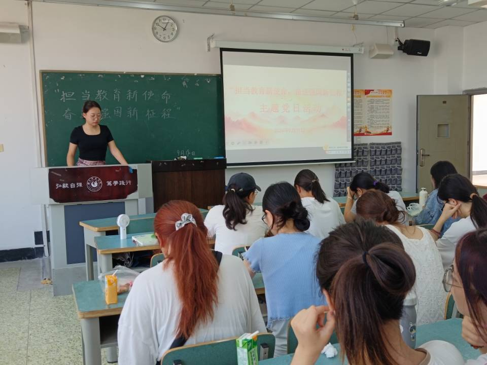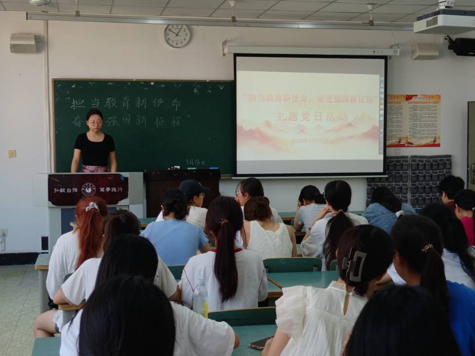 本网讯(文、图/郭纤纤)9月19日下午,教育科学学院组织学生党支部党员开展了“担当教育新使命,奋进强国新征程”主题党日活动。此次活动由林小雨主持。