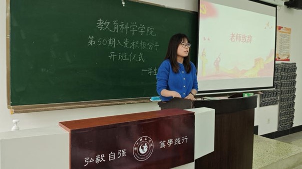 本网讯(文、图/唐于涵)10月25日,教育科学学院在行知楼204举行第五十期入党积极分子培训开班仪式。出席本次开班仪式的有教育科学学院学生党建中心主任杨蕾及第五十期入党积极分子。本次开班仪式由张欣瑶主持。