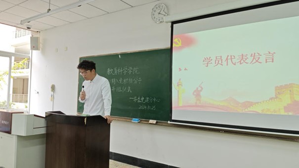 随后,学员代表吴光耀发言,他表示自己和全体学员会用饱满的热情、积极的态度投入到接下来的学习中,坚决拥护党的领导,坚定马克思主义信念,听党话、跟党走,不忘初心、牢记使命,积极向党组织靠拢。