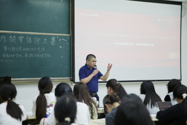 本网讯(文/高一丹、图/冯宁飞)5月22日晚,教育科学学院与旅游与地理学院于行知楼101共同开展第五十一期入党积极分子培训班的第一节党课培训。党课的主题为“感悟思想伟力,筑牢信仰之基”,由教育科学学院党委书记罗立顺主讲。