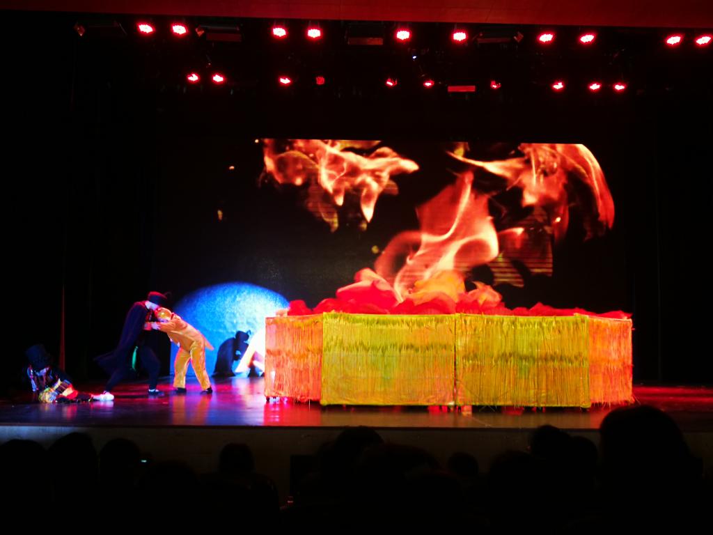 中场休息后,开始了飞行第二站——《阿提拉巴》。“无所不能”的魔霸天想要抢走美丽又能歌善舞的彝族姑娘,彝族的勇士阿提拉巴及时出现,机智勇敢的打败了魔霸天,之后还用烈火烧光了吃庄稼的魔虫,维护了大凉山彝族人民的和平。人们便把每年的农历6月24日定为火把节,用于纪念阿提拉巴。整个剧情生动有趣,演员们的表演惟妙惟肖,在带给大家快乐的同时,也将中华民族的传统故事深深根植在小朋友的心中。