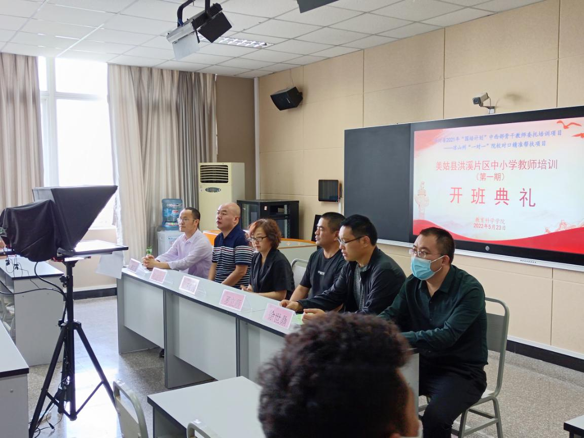 本网讯(文、图/谢义淼)5月23日上午,由教育科学学院承办的2021年美姑县“一对一”精准帮扶项目——美姑县洪溪片区中小学教师培训(第一期)开班典礼在弘毅楼504a教室顺利召开。乐山ty8天游平台登录院长兼国培项目首席专家汪红烨、学院党委书记罗立顺、学院党委副书记何晓军、副院长徐世鼎、副院长唐前军、国培项目首席执行专家张广云、班主任帅希权、杨婷婷及来自四川省凉山彝族自治州美姑县的47名学员教师参加了此次开班典礼。开班典礼由徐世鼎主持。