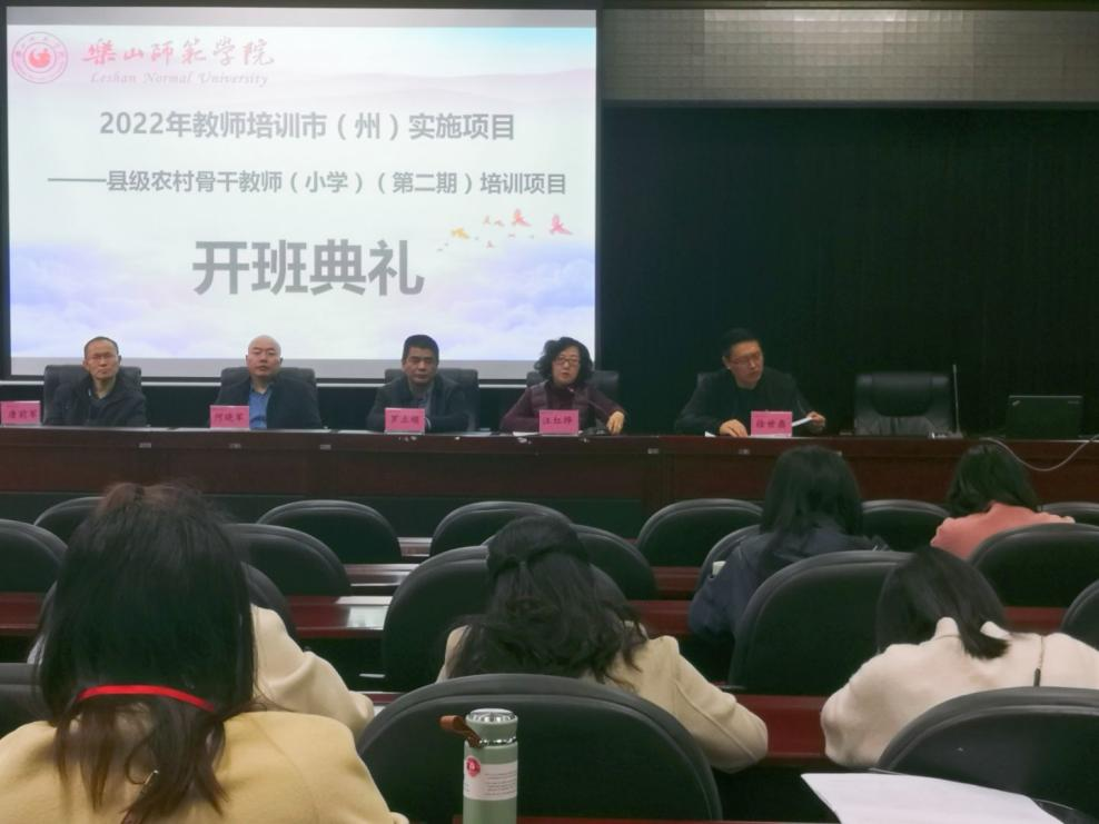 本网讯(文/冯紫君、图/雷仕美)3月20日上午,2022年“国培项目”市(州)实施项目——县级农村骨干小学教师培训(第二期)开班典礼在弘毅楼413教室成功举行。乐山ty8天游平台登录院长兼国培首席专家汪红烨、党委书记罗立顺、党委副书记兼纪委书记何晓军、副院长徐世鼎、唐前军、教学班主任廖娅晖、王春燕、生活班主任巴玉宁及47名学员参加了此次开班典礼。开班典礼由徐世鼎主持。
