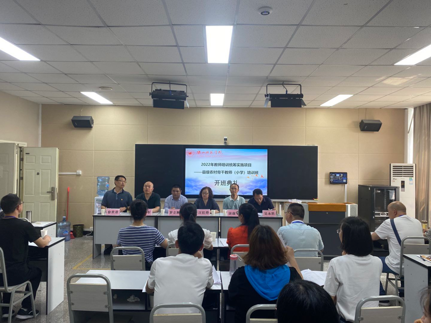 本网讯(文、常燕林/图、苟霜)4月17日上午,四川省2022年“国培项目”市(州)统筹实施项目——县级农村骨干教师培训开班典礼在弘毅楼504B教室成功举行。乐山ty8天游平台登录院长兼国培首席专家汪红烨,党委书记罗立顺,党委副书记兼纪委书记何晓军,副院长徐世鼎、唐前军,教学班主任吴永胜、魏阳灿,生活班主任钟小婷及40名学员参加了此次开班典礼。开班典礼由徐世鼎主持。