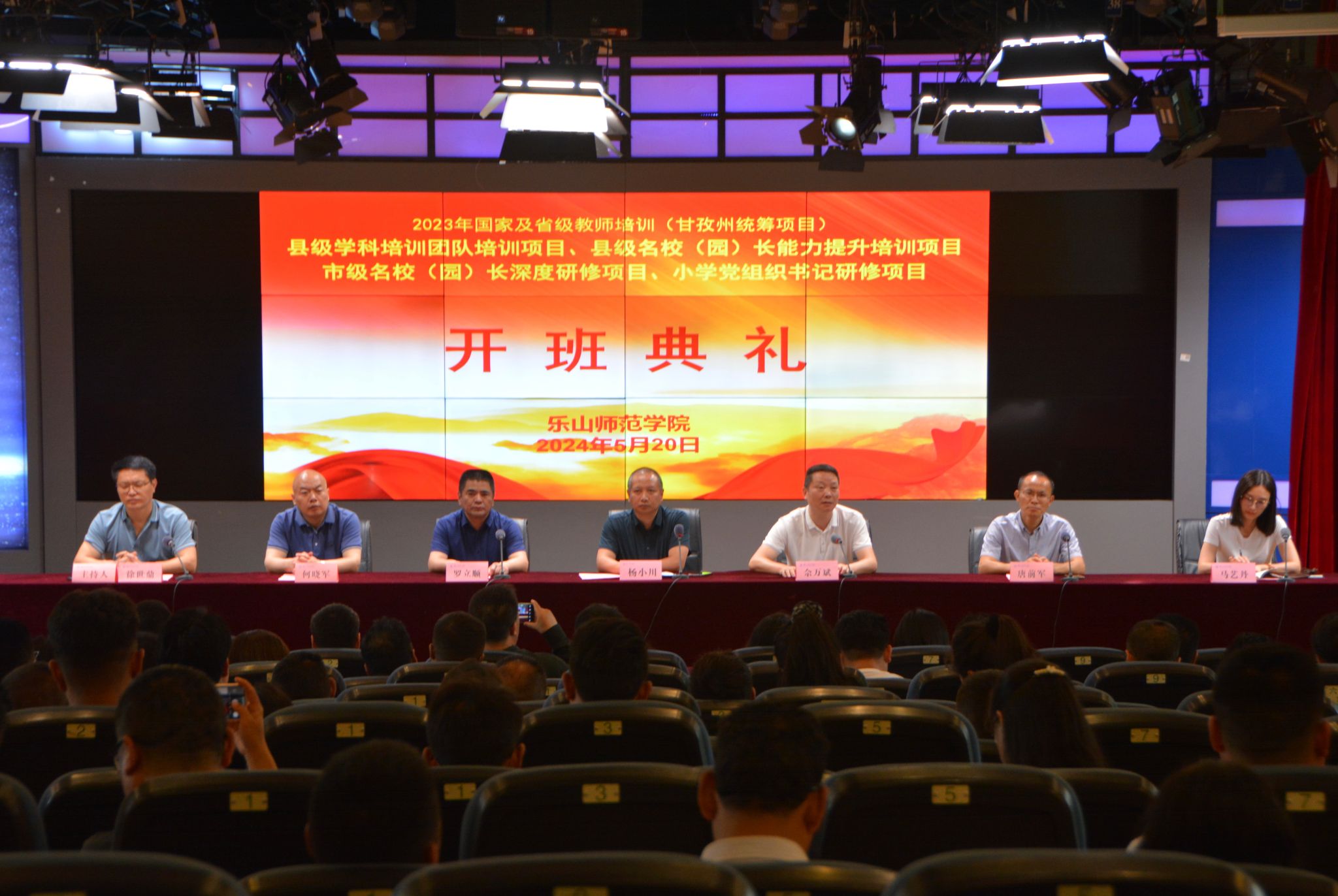 本网讯(文、巴玉宁/图、张媛)5月20日上午,由乐山ty8天游平台登录承办的2023年度国家及省级教师培训(甘孜州统筹项目)四个培训班在乐山师范学院旷怡楼学术报告厅顺利开班。学校党委常委、组织部部长、教育科学学院院长佘万斌,继续教育学院院长杨小川,教育科学学院党委书记罗立顺等教育科学学院领导班子成员出席,四个培训班教学、行政班主任,志愿者以及来自甘孜州近200名学员参加。开班典礼由教育科学学院副院长徐世鼎主持。