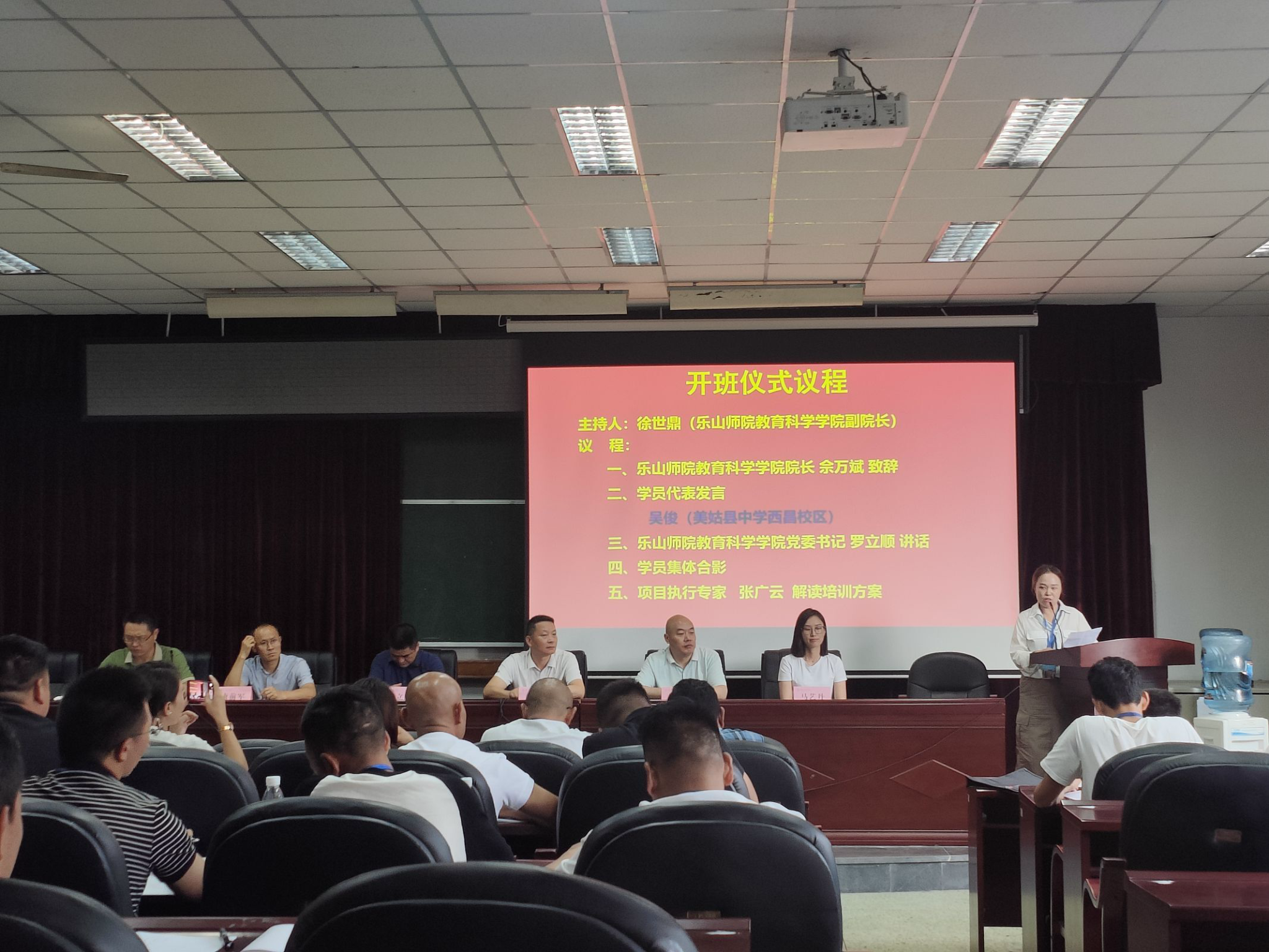 本网讯(文图/邓鹏)6月17日,由乐山ty8天游平台登录承办的“四川省 2023年基础教育教师培训委托项目凉山州“一对一”院校对口精准帮扶项目美姑县中小学教学副校长培训班”开班典礼在弘毅楼412教室顺利举行。学校党委常委、组织部部长、教育科学学院院长佘万斌,教育科学学院党委书记罗立顺,党委副书记、纪委书记何晓军,副院长唐前军、马艺丹,教师教育教研室主任张广云,学生工作办公室主任童瑶以及来自美姑县的46名学员参加了此次开班典礼。开班典礼由副院长徐世鼎主持。