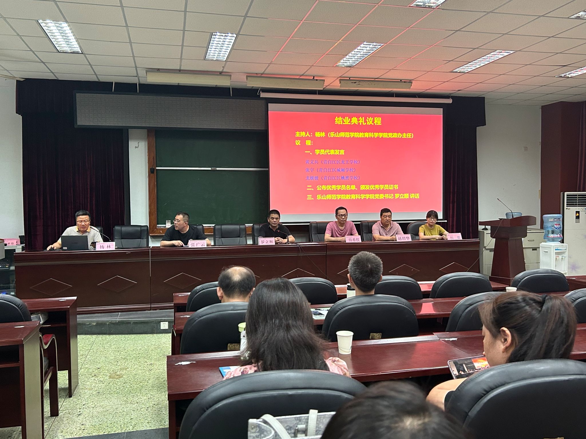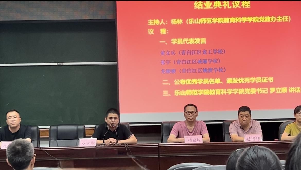 本网讯(文、图/李金婷)7月18日上午,由乐山ty8天游平台登录承办的“2024年成都市青白江区中小学教师班主任专业素养培训”结业典礼在弘毅楼412教室举行。教育科学学院党委书记罗立顺、教师教育教研室主任张广云、教务与科研管理办公室主任帅希权、实验科科长赵增华、辅导员杨蕾及81名学员参加结业典礼,由学院党政办主任杨林主持。