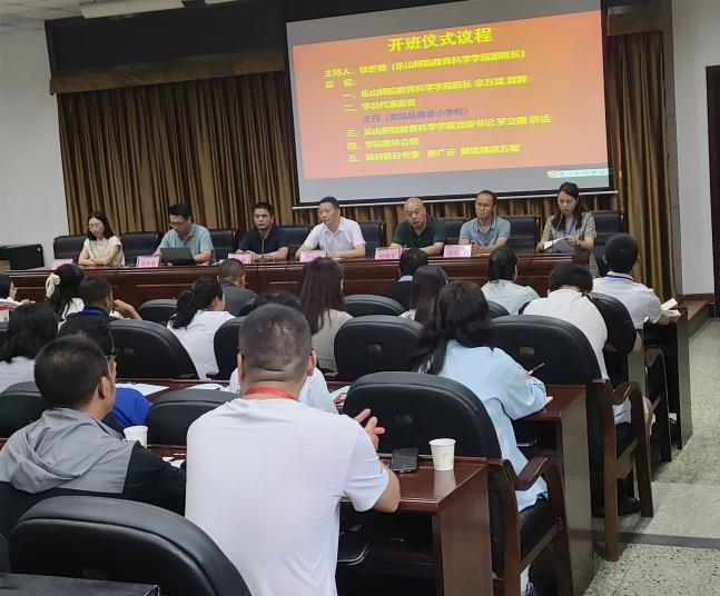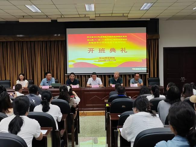 本网讯(文/陈甜 图/董家雪)9月23日,由乐山ty8天游平台登录承办的2023年凉山州“一对一”院校对口精准帮扶项目——美姑县中小学英语骨干教师培训”开班典礼在弘毅楼312教室顺利举行。学校党委常委、组织部部长、教育科学学院院长佘万斌,教育科学学院党委书记罗立顺,党委副书记、纪委书记何晓军,副院长唐前军、马艺丹,教师教育教研室主任张广云,实验室办公室主任赵增华以及来自美姑县的46名学员参加了此次开班典礼。开班典礼由副院长徐世鼎主持。