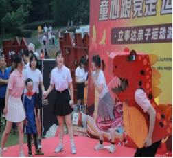 自由游戏:随着热身活动的结束,主持人宣布自由游戏环节正式开始,小朋友们就像撒欢的小野马,迫不及待地奔向50多个项目区域。在依山傍水的滟澜洲半岛上,大手牵小手,小手拉大手,融入绿意盎然的大自然。本次自由游戏时长为一个小时,各家庭拿着游戏卡进入区域体验,每个项目都有精彩的宣传和规则立牌。来自乐山师院教科学院学前教育专业的大三学生游戏组织者们向家长和小朋友讲解游戏卡使用方式、区域活动体验规则和注意事项,志愿者们分散到各个点位观察活动情况,以便提供专业的志愿服务,并记录活动过程中的精彩瞬间。