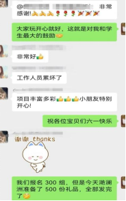 张涛老师是乐山ty8天游平台登录专任教师,她热爱教育事业,真切关心儿童成长,致力于给孩子们一个快乐的童年,她开展数十场家长讲座和线上线下家长咨询;成立遛娃群,免费组织大型亲子活动200多场。本次活动也是由张涛老师带领20级专业200位学生将这学期所学的《幼儿运动课程设计与指导》和《幼儿园家庭与社区教育》课程的理论和实践结合,和小朋友们共同度过快乐六一。学生们对本次户外实践格外珍惜,所有的游戏都是学生们精心设计、张老师对小组单独进行指导。每一个游戏的诞生,要经过讨论雏形、打磨细节、策划分享、模拟展示诸多程序,最终以最好的面貌呈现到各个家庭面前。