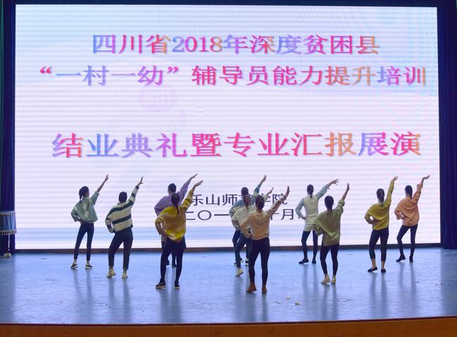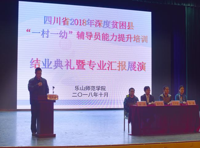 10月30日,由教育科学学院承办的四川省2018年度深度贫困县“一村一幼”辅导员能力提升培训结业典礼暨专业汇报表演在实训楼多功能厅举行。教科学院副院长(主持行政工作)谢艺泉、党总支书记杨霞、副院长徐世鼎、党总支副书记张波和马边教师进修学校校长王开富等出席此次会议,会议由徐世鼎主持。