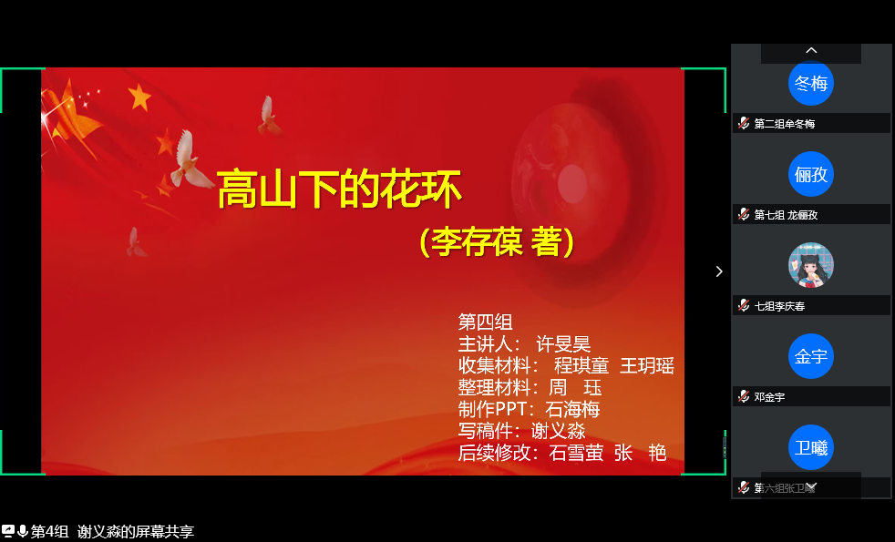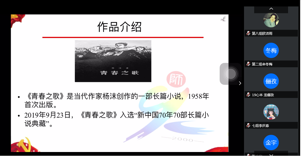 活动前期,入党积极分子们精心准备,学院党建中心多次组织打磨。会上10个小组代表按顺序依次进行分享,主要从红书及作者简介、章节片段、人物分析以及小组感悟四个方面依次分享了《青春之歌》、《红岩》、《钢铁是怎样炼成的》、《高山下的花环》等红色经典书籍。同学们从刚毅坚韧的《红岩》勇士,林道静不畏艰险奔向革命的《青春之歌》,敢于挑战命运,自强不息、奋发向上的保尔这些鲜活的形象中感受到了无穷的革命精神与力量。