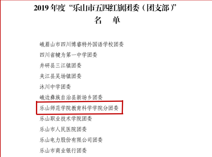 本网讯(图、文/张红丽)近期,在共青团乐山市委官方网站公示,乐山ty8天游平台登录分团委荣获2019年度“乐山市五四红旗分团委”。在学校团委、学院党总支的悉心指导下,乐山ty8天游平台登录分团委坚持扎实创新开展共青团工作,作为先进青年的群众组织,在党组织的带领下,积极开展青年思想政治教育,注重基层团支部的建设,使团的各项工作和活动影响全体青年,切实增强团组织的创造力、凝聚力、战斗力,更好地发挥共青团作用。