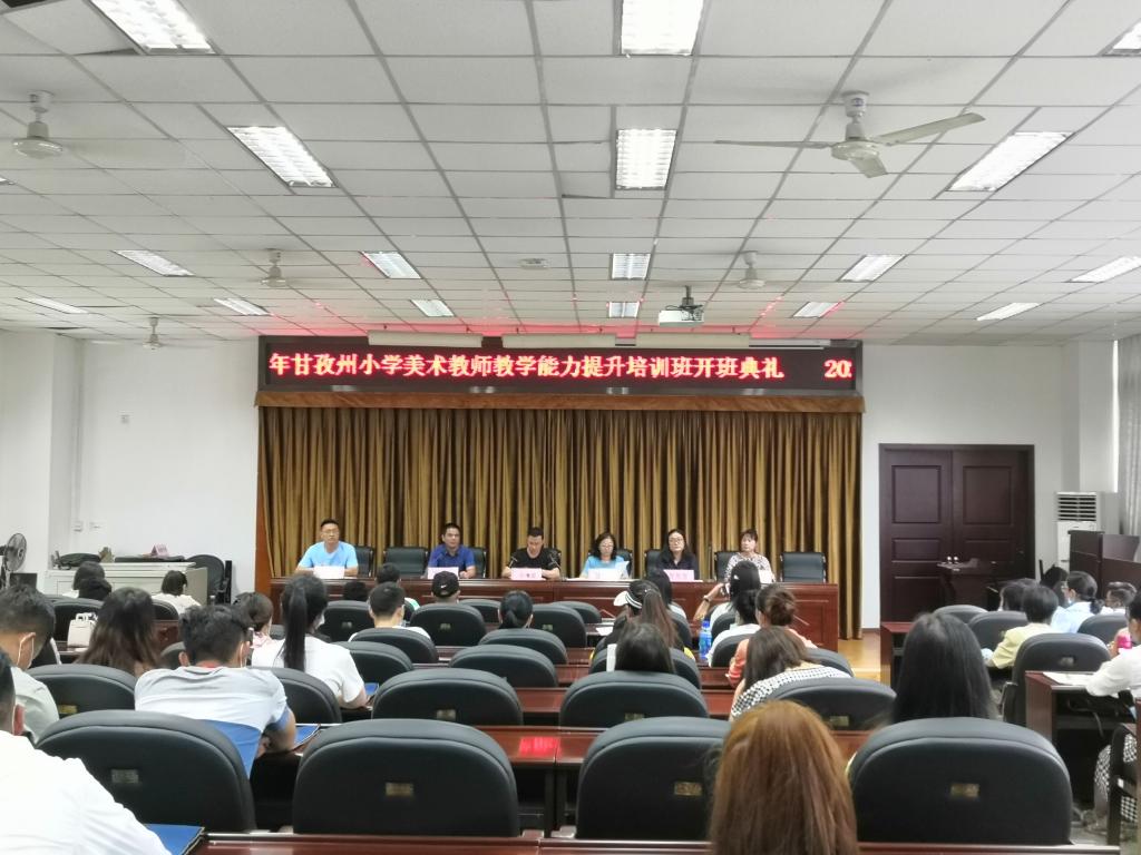 本网讯(文、图/翟雅媛)8月21日教师教育学院2020年甘孜州幼教和小学美术教学能力提升培训班开班仪式在弘毅楼312教室举行。甘孜州教育体育局语委办主任许增盛,乐山师范学院教师教育学院院长汪红烨、党总支书记罗立顺、教师教育学院专任教师兼学前培训项目首席执行专家苗芳芳、专任教师兼小学美术培训项目首席执行专家陈燕林以及来自甘孜州各地的培训老师近100人参加了此次开班。开班仪式由教师教育学院副院长徐世鼎主持。