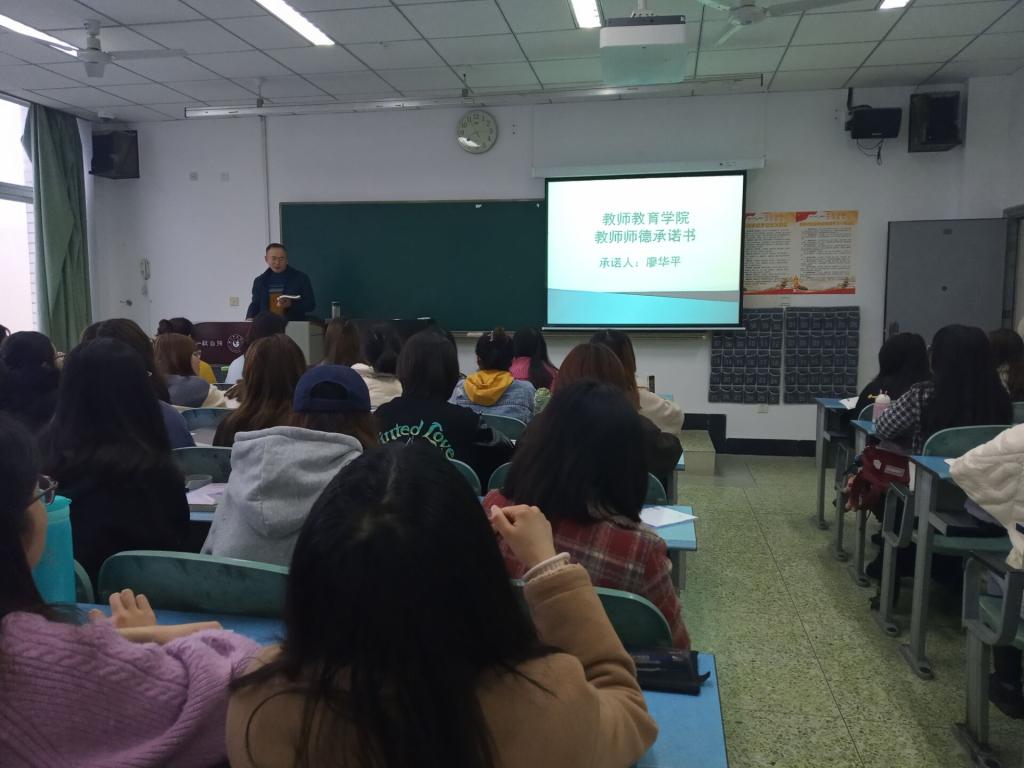 课前十分钟,任课老师们面向全体学生进行师德承诺,铿锵有力的誓言展现出教师严谨治学、以身作则的良好师风。同学们在各班委的带领下,庄严承诺:“严格遵守课堂纪律,上课不迟到、不早退、不旷课,不使用通讯工具,认真听讲,积极发言,不高声喧哗、不起哄、不睡觉、不做任何与学习无关的事……”学高为师,身正为范。教师以立德树人为根本,甘为平凡,无悔奉献,言传身教,教书育人。