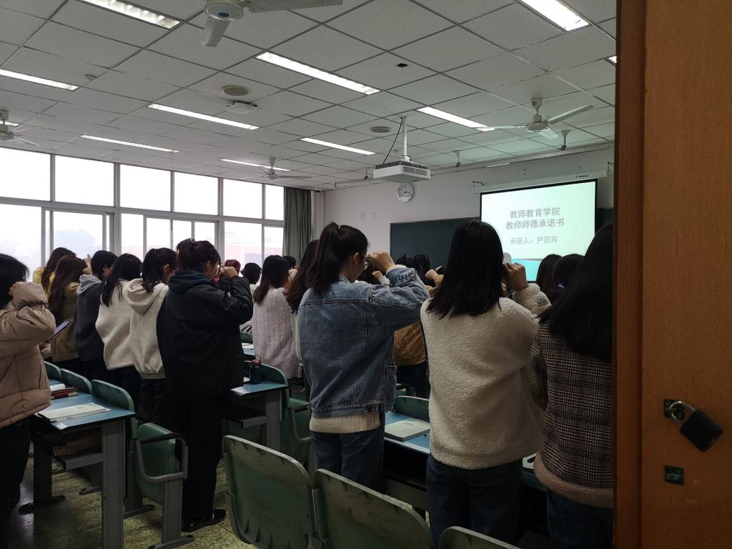 新学期,新起点,师德学风承诺让老师们更加明晰教书育人的责任与使命,也让同学们进一步明确新学期的目标。教善求真,躬行致知,他们将以实际行动践行今日诺言。