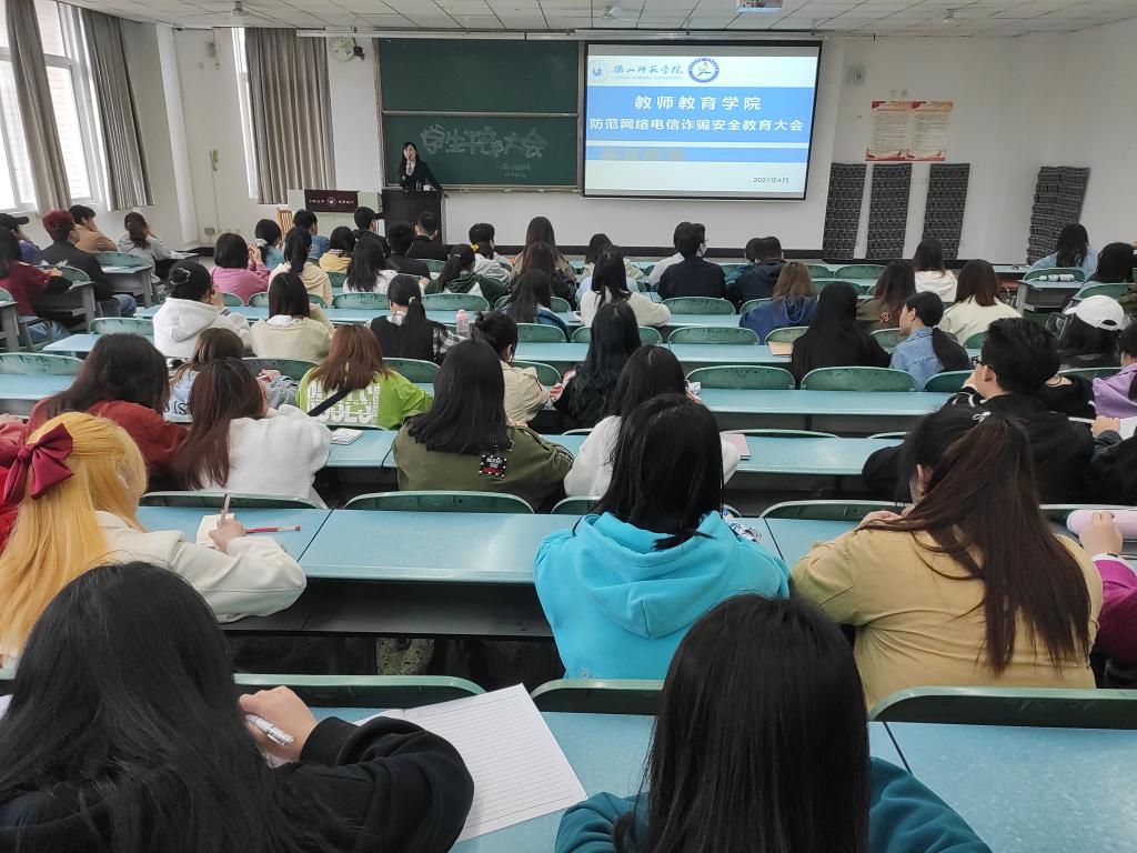 4月18日下午2点,教师教育学院在行知楼教室分别召开学生干部大会、年级大会和主题班会,教师教育学院全体辅导员给各年级学生宣讲了网络安全知识,会上,老师们对不同的诈骗案例进行分析,并揭露网络电信犯罪常见的新型套路,网络传播速度快、范围广,信息鱼龙混杂,真假难辨,老师们对相应的防范措施进行详细讲解,让同学们熟悉生活中常见的诈骗形式,增强同学们的灵活应对能力,提升同学们对个人信息的保护,提高安全防范意识。