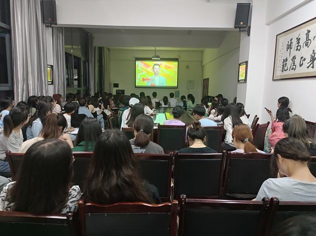 本网讯(文、图/王雪)为了深化党史学习教育,培养党员爱党爱国情怀,厚植红色基因。6月6日晚上20:00,教师教育学院组织全体学生党员和党员发展对象在学院101教室观看了由中央广播电视总台隆重推出的《全国大学生党史知识竞赛大会》直播。