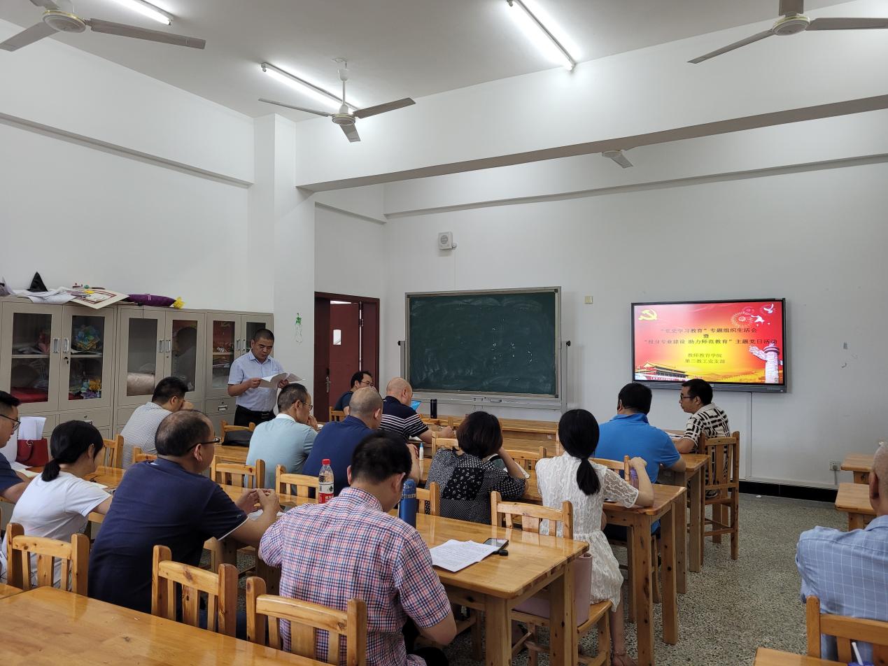 本网讯(文、图/朱文闻)7月8日下午一点半,教师教育学院第二教工党支部在特教B306组织开展了“党史学习教育”专题组织生活会暨“投身专业建设 助力师范教育”主题党日活动。学院党总支书记罗立顺、支部书记王立新和支部全体党员参与活动,院长助理吴永胜列席参与。