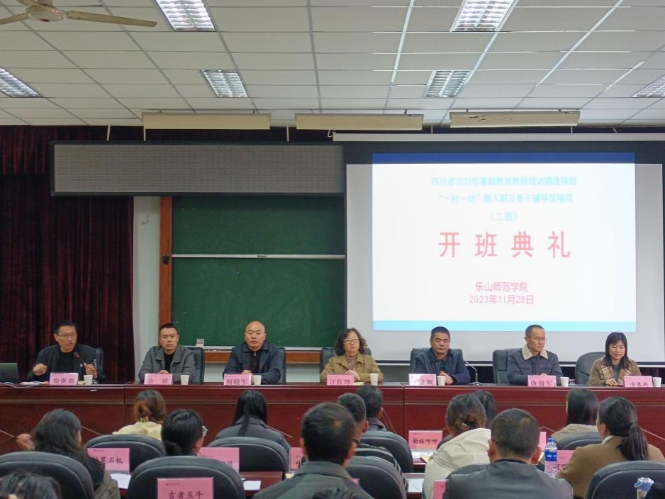 本网讯(文、陈欢/图、邓庆琳刘馨仪 韩丹阳)11月28日上午,四川省2023年基础教育教师培训遴选项目——“一村一幼”新入职及骨干辅导员项目(二班)开班典礼在弘毅楼412教室成功举行。乐山ty8天游平台登录院长兼国培首席专家汪红烨,党委书记罗立顺,党委副书记兼纪委书记何晓军,副院长唐前军,教学班主任余祥、金春燕,生活班主任帅希权及50名学员参加了此次开班典礼。开班典礼由副院长徐世鼎主持。