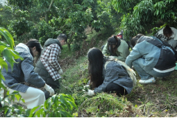 随后,村民为同学们讲解了荔枝湾主要农作物和经济作物,以及它们的种植方式和生长习性;村民们向同学们详细讲解了割草的要点和相关的注意事项,并手把手指导大家如何实际操作。掌握割草技能后,同学们分组进行割草活动,利用镰刀等工具对田野杂草进行了清理,整个现场井然有序。通过实际参与,同学们不仅掌握了割草工具的使用技巧,还体会到了田野劳动的辛勤与价值,切身感受到了劳动的魅力。