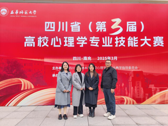 本网讯(文、图/卢艳萍)2025年3月14日,由四川省教育厅高等教育处指导,四川省普通本科高校心理学类专业教学指导委员会主办,西华师范大学承办的四川省第三届高校心理学专业技能大赛决赛在西华师范大学华凤校区顺利举行。我院心理学专业4名教师前往比赛现场。