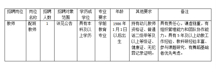乐山师范学院附属幼儿园招聘教职工岗位和条件要求一览表