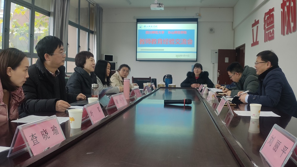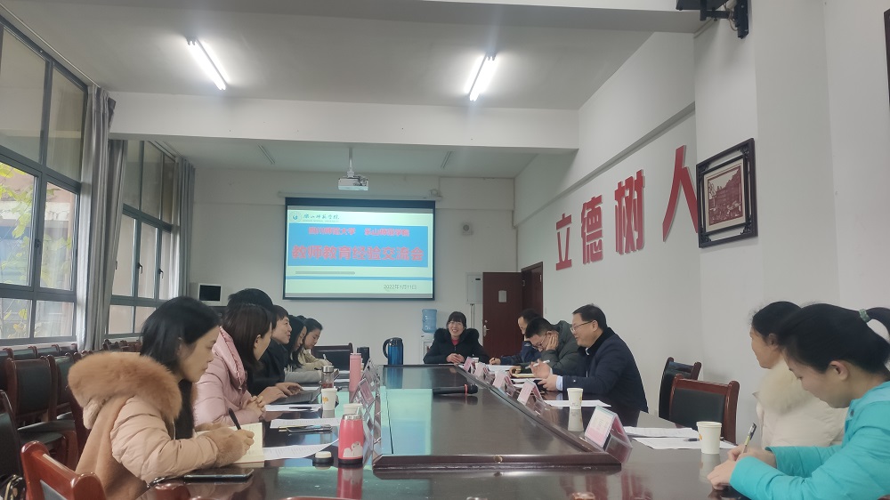 本网讯(文/杨小丽 图/吴瑞雪)1月11日,四川师范大学师范生教学能力综合训练中心主任张雳、副主任谢小川、化学与材料科学学院副院长伍晓春等一行6人来我校教师教育学院进行考察交流。教师教育学院执行院长罗明礼、教育科学学院副院长唐前军、新能源材料与化学学院副院长马旭光、外国语学院学科教学论教师刘丽平及教师教育学院相关教师参加了此次交流。