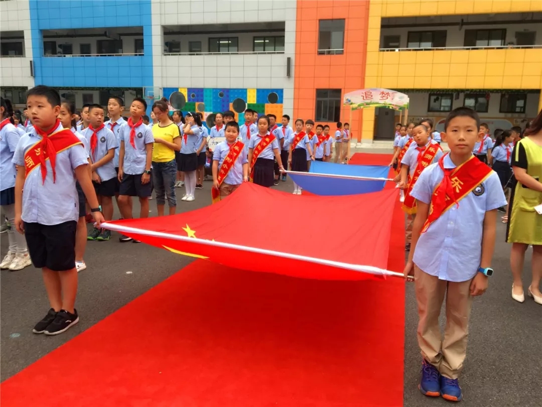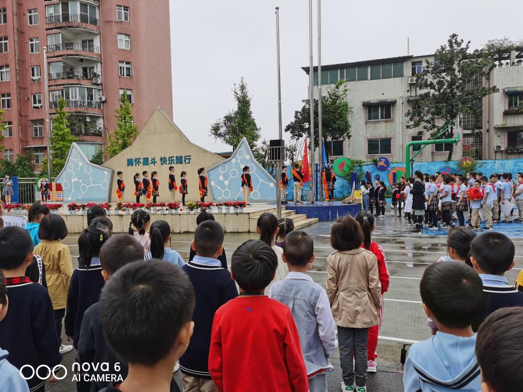 当附小国旗护卫队队员昂首挺胸,迈着铿锵有力的步伐,护卫着神圣的国旗出现时,同学们心中对国旗的敬意油然而生。“起来!不愿做奴隶的人们……”国歌雄壮响起,国旗护卫队队员威武一挥,在同学们的注视下,鲜红的五星红旗冉冉升起,飘扬在乐山师范学校附属小学的上空。嘹亮的国歌声中,鲜艳的国旗下,庄严肃穆的氛围中,爱国爱校、奋发图强的情感在每位同学心中激荡。