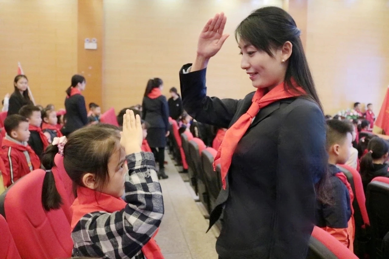 为进一步增强海棠少先队员的组织意识,推动海棠少先队事业的发展,在中国少年先锋队建队日71周年来临之际,海棠实验小学“争做新时代好队员”入队仪式隆重举行。 “勤奋学习、强健体魄、牢记嘱托、争做先锋!让我们同心去创造,让我们并肩去远航!”孩子们稚气未脱的声音里,蕴藏着未来与希望。