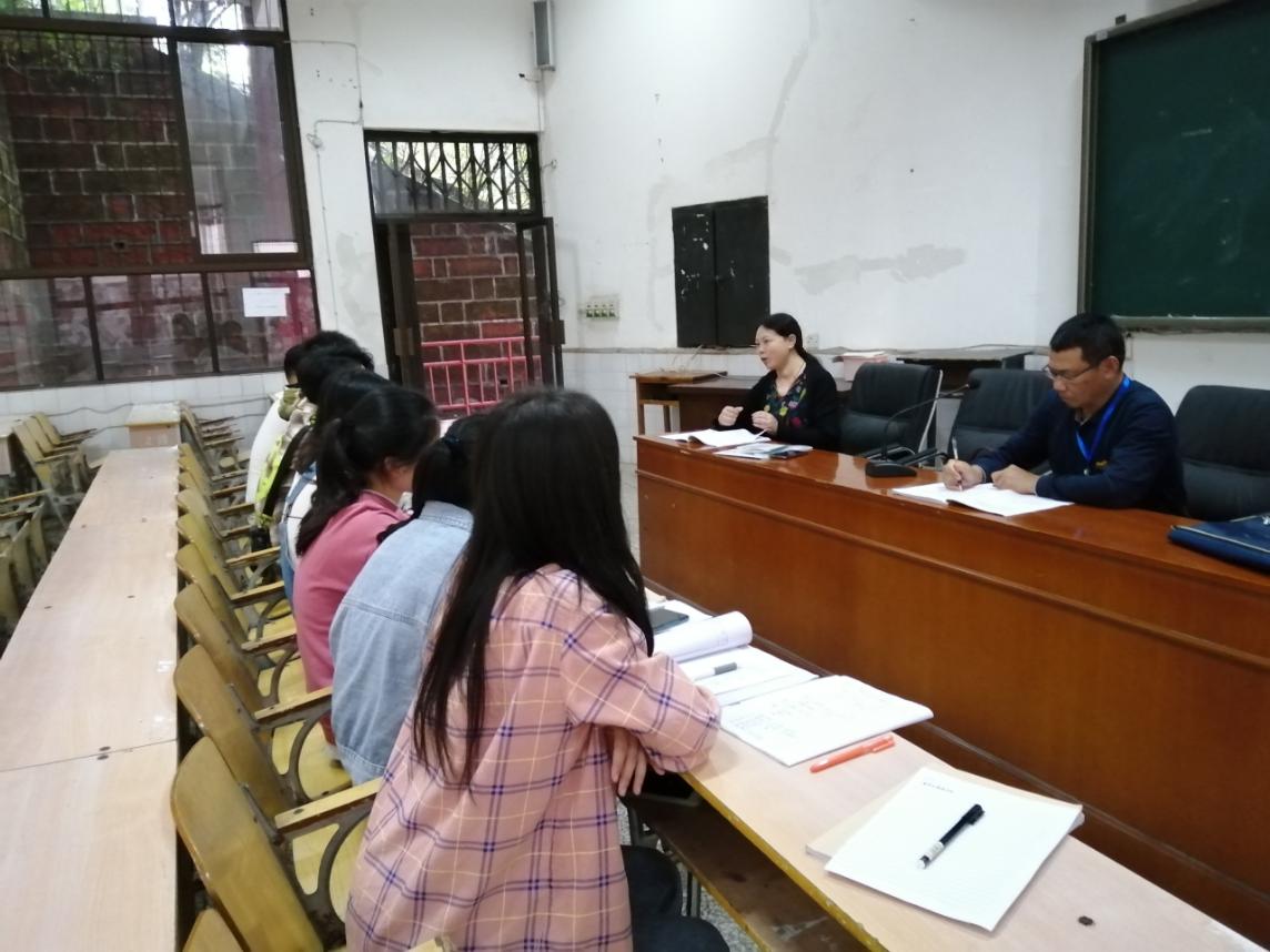两位教授认真听取了数信学院实习生谢亮的《函数的单调性》一课。课后,针对谢亮同学的授课开展了评课、指导工作。首先谢亮同学对自己的教学设计、授课进行了反思,并提出了教学语言不精炼、教学设想不够完善、学情把握程度不够精准等问题。期间,刘丽平教授指出授课时,不应只求进度而不讲质量,应及时掌握学生知识的接纳程度,一味地追求在内容的广度只会适得其反。实习期间应向指导教师虚心求教,切实落实立德树人的教育理念。王应红教授向全体实习生提出希望:1.实习生应积极主动投身于教育实习中去,要有吃苦精神。2.在进行实习教学时,应对学生进行“诊断”,及时调整教学方式,更好地对症下药。3.实习期间应注意人身安全,一切以安全为主。