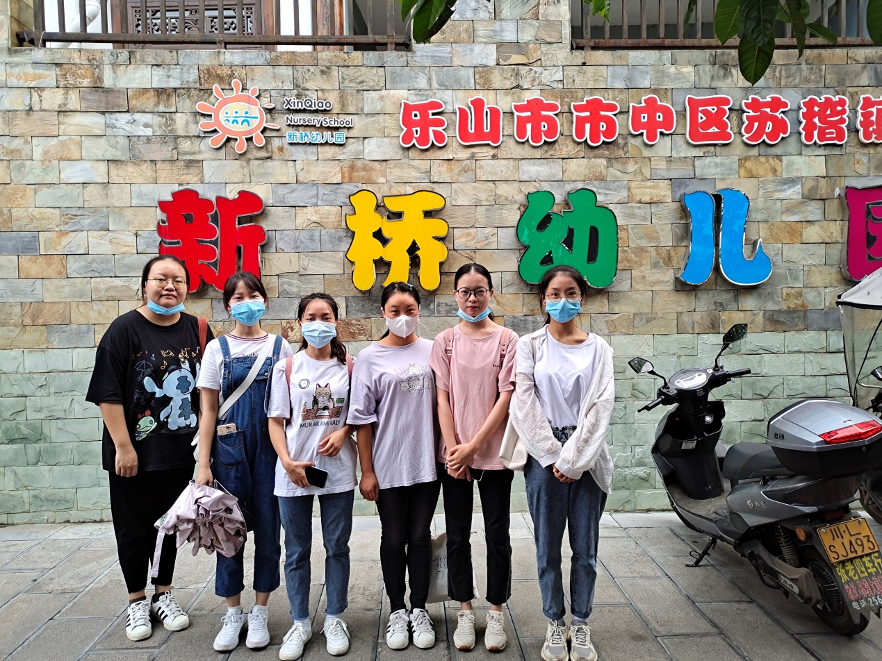 本网讯(文、图/周玲)为使学前教育专业学生了解幼儿园的教育与教学工作的特点,进一步提高专业技能,为将来的幼儿教育工作积累经验,2021年9月2日,乐山师范学院教师教育学院2018级学前教育专业的6名学生来到乐山市苏稽新桥幼儿园实习。