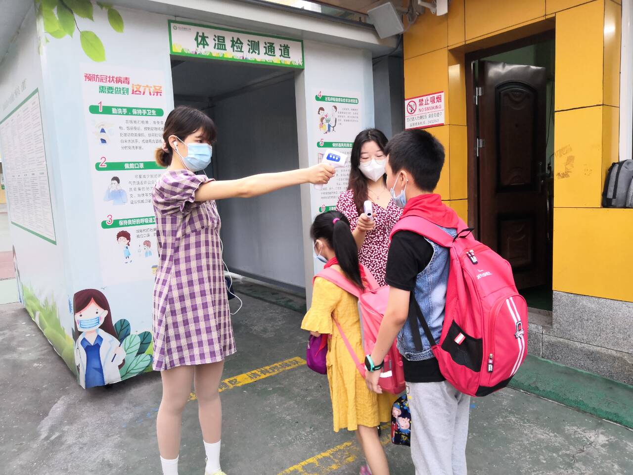 在二、四年级实习的同学来到了县街小学的府街校区,进入学校后,我们积极认真地帮助老师工作,如分发教材、打扫卫生、体温测量、组织放学等。