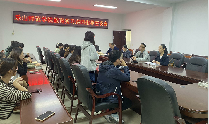 在五通桥中学,学校教导主任彭远安与实习学生一道交流和探讨教学和班主任工作,他指出,“教育实习是实习生与指导老师相互碰撞,共同受益的过程”,他给了同学们许多建议,并表示将一如既往地为实习生做好服务工作。