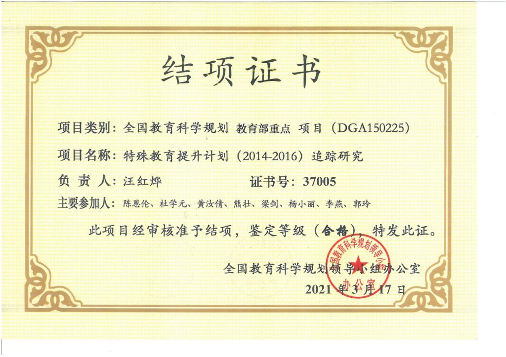 汪红烨1.全国教育科学规划领导小组结题证书