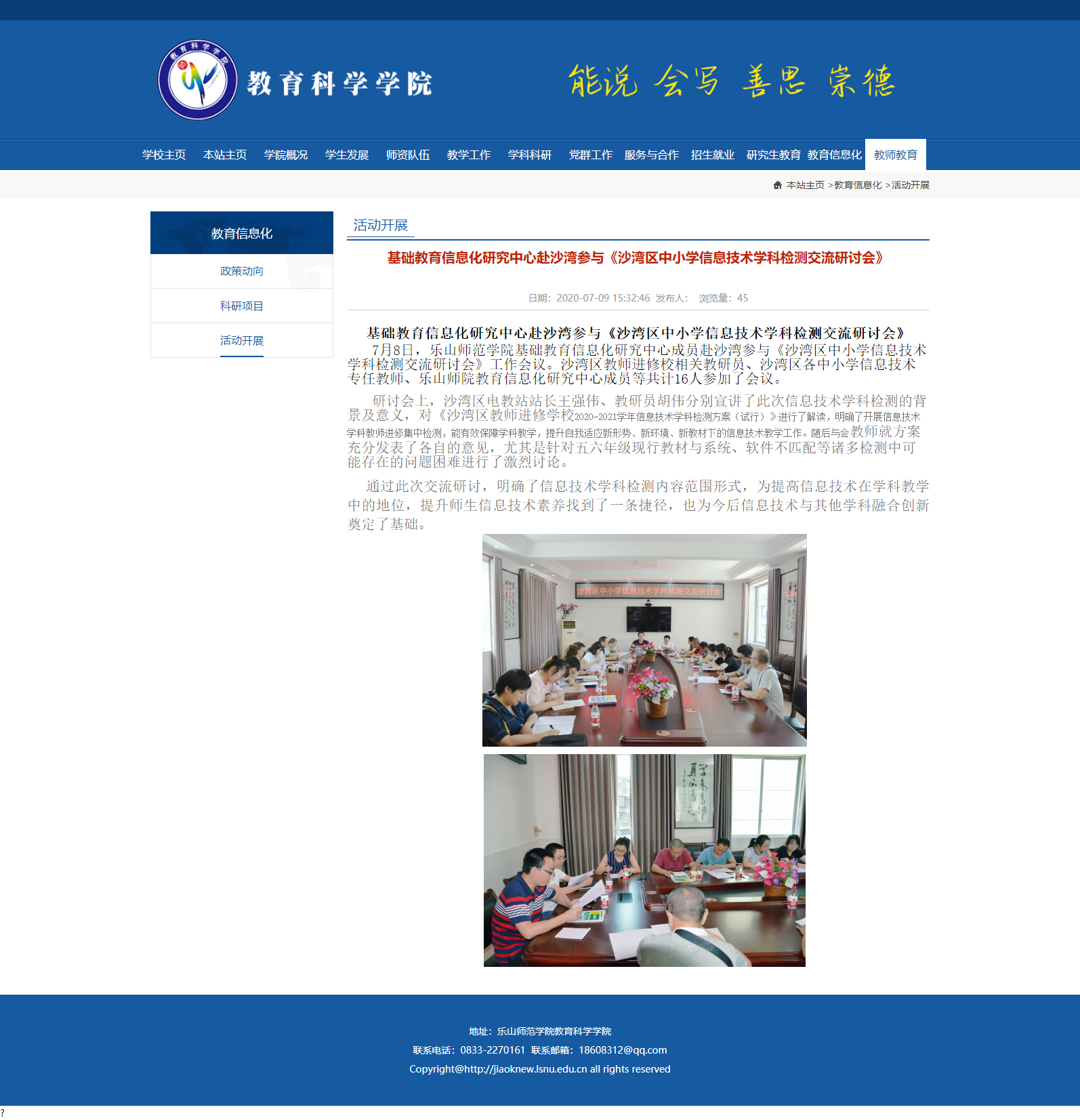 基础教育信息化研究中心赴沙湾参与《沙湾区中小学信息技术学科检测交流研讨会》-乐山ty8天游平台登录