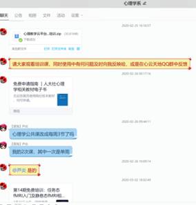 王立新还担任了2019级心理学专业《普通心理学2》的课程老师,网课主要采用QQ群课堂直播的方式,课前让学生预习教材和学习手册电子版,每次课至少提前10分钟QQ群投票签到,每周两次课,每次正式新课前拿出10分钟,一次课让两名学生报告读书体会,一次课小组报告研讨的话题,促进学生阅读专业书籍,锻炼思考能力和演讲能力,课后通过融智云考平台让学生做练习,并利用此平台进行线上单元测验。他表示,线上教学能够增强师生互动,但难题在于老师不知学生是否在线认真学习,监控难度提高。尽管老师可中途随机提问学生回答,但最关键最重要的还是在于学生学习的自觉性的提高。